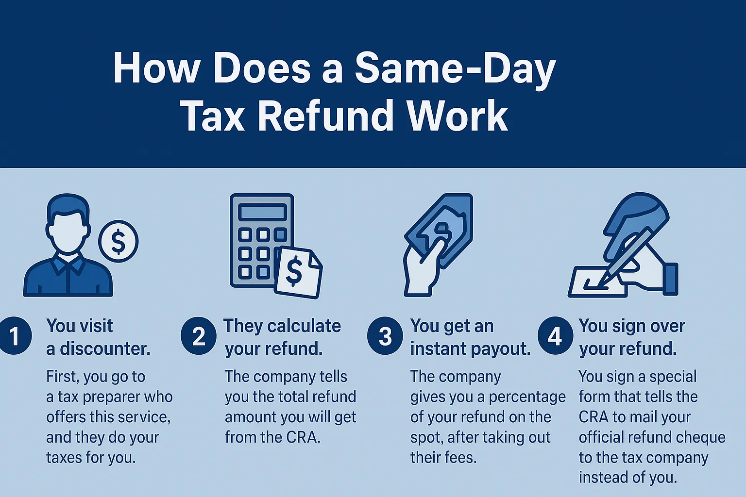 It is not a real refund from the CRA. It is a service offered by private companies that prepare taxes. These companies are sometimes called “discounters.”